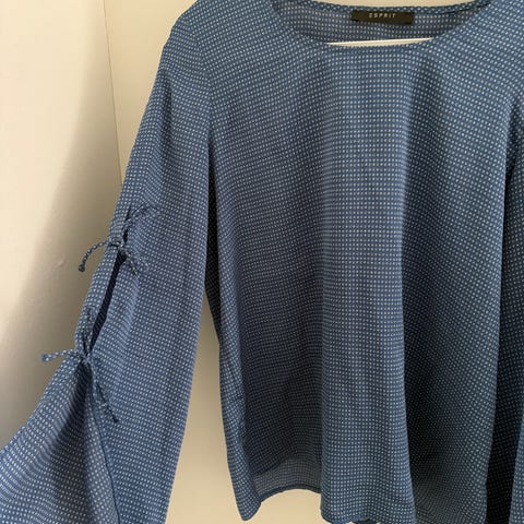 Esprit naisten paita, koko M, merkitty 42, mutta vastaa 38-40. Myös väljänä 36- kokoiselle. Kai-kai 53, pituus 64 cm. Materiaalina polyesteri. Paidassa on sinisävyinen kukkakuvio tumman sinisellä pohjalla. Nouto Helsingin Vallilasta, lähetys kirjeenä 5,50, pakettina 6,80.