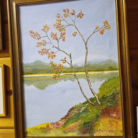 Sotkan canvastaulu 90x120cm. Takana puukehys ja ripustimet.