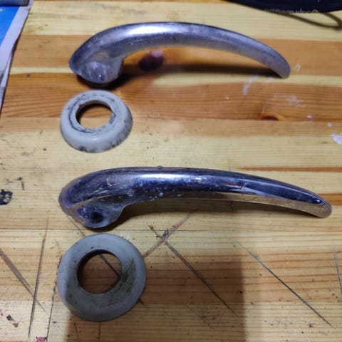 Todennäköisimmin vm. 64-65 VW kuplan ikkunakammet. Lukitustapit tallella ja muovialuslevyt ehjät.