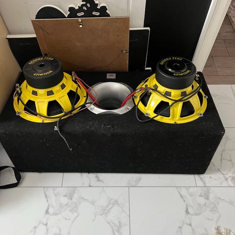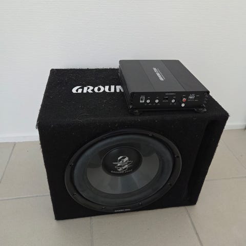 12" subbari, johon on kiinnitetty Blaupunkt GTA 2100B vahvistin. Kompakti paketti auton takakonttiin.