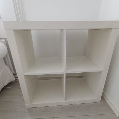 Ikea kallax hyllykkö kahdella laatikostolla. Erityisesti pohjassa käytön jälkiä.