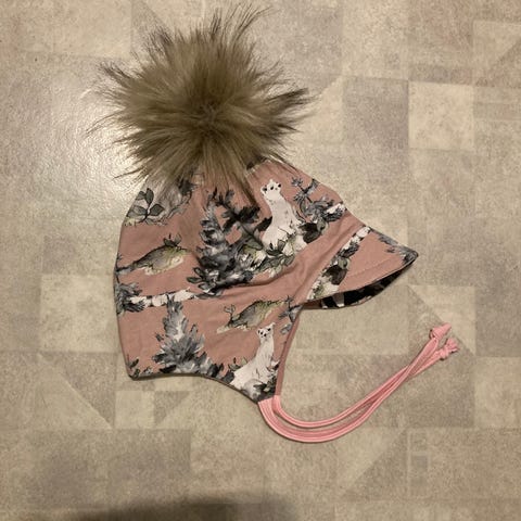 Uusi lippapipo 50-53cm kokoiseen päähän. Kaksinkertaista trikoota. Tekoturkistupsu. Hinta 16€+ postitus toridiilinä