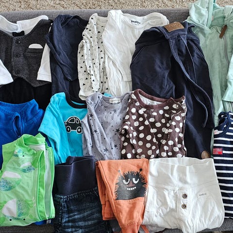 3 kpl tosi hyvässä kunnossa olevat mekot/mekkobodyt: Blaa, Moomin ja H&M. En löytänyt moitteita, korkeintaan väri haalistunut vähän alkuperäisestä.