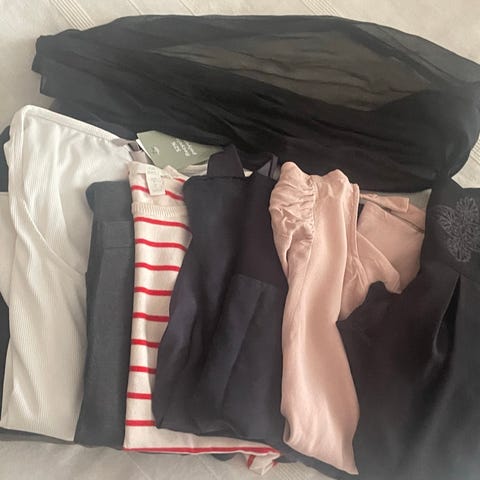 Sis toppeja, mustat suorat housut (Only kuin uudet), neuletakit, neuleet, hupparit, shortsit, paidat, treenitrikoot jne jn
