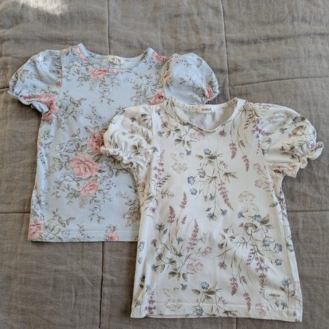 Newbien legginssisetti koossa 104. Tummansiniset kokoa 110, mutta ottaisin käyttöön jo 104 koossa. Molemmat hyväkuntoisia. Kukalliset uutena ostettu ja yhden tytön käyttämät. Niissä tummentumaa polvissa, mutta pohjaväri valkoinen ja värit hyvät.