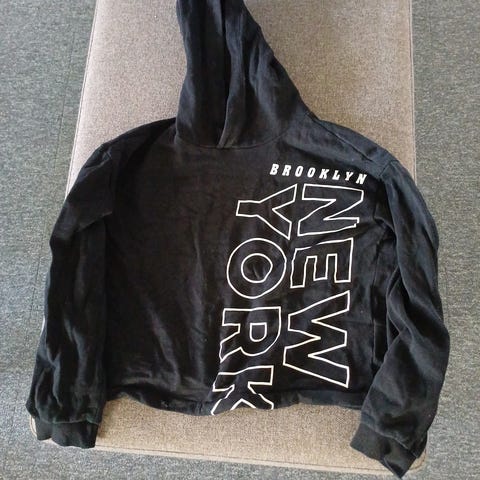 Musta huppari ilman huppua, jossa punaisia yksityiskohtia.