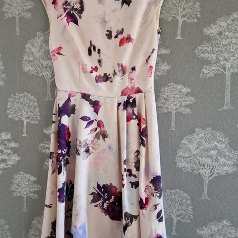 Naisten hihaton mekko, koko vuorilla. Takana pitkä vetoketju.