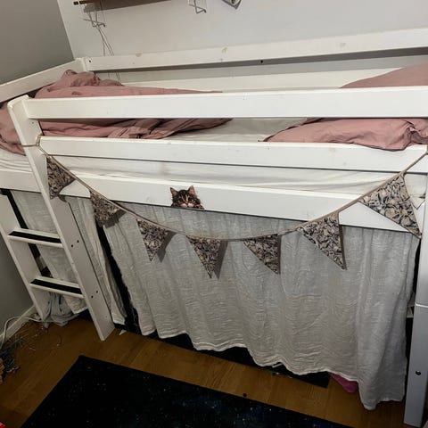 Kuvat lainattuja, mutta sama sänky kyseessä! Siisti (lähestulkoon uudenveroinen) kuultovalkoinen puoliparvisänky, juniorisänky, kuvassa mitat. Ilman patjaa tai lisäosia. Myydään osiin purettuna.