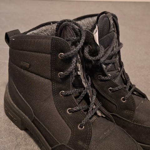 Hyvin vähäisellä käytöllä olleet kengät. Sivussa heijastavat kuvioinnit. Vedenpitävyyttä on. Leveä lesti. Ovh. 99€.
