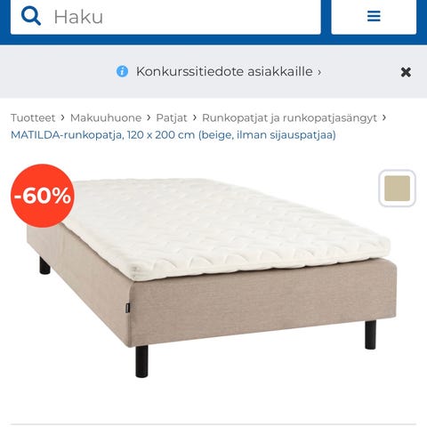 Siisti, vähän käytetty runkopatjasänky petauspatjalla