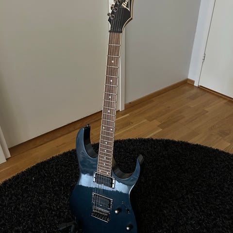 Sähkökitara Ibanez GRGR221PA-AQB ja Kustom KG-15R -kitaravahvistin. Sähkökitarassa on puhutteleva sininen kansi ja kaksiosainen runkoväri, vahterakaula sekä otelauta, jossa on suuret upotukset. Kitarassa on kaksi IBZ-6 mikrofonia, kolmiasentoinen mikkikytkin, äänenvoimakkuus- ja sävynsäädöt sekä kiinteä talla. Mukana valkoinen kitarahihna ja kitarapiuha.