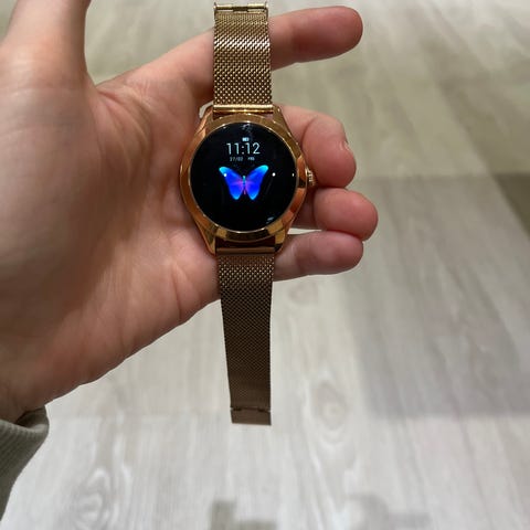 Kuura älykello unisex. Pyöreä näyttö ja metallinen ranneke. Sopii sekä miehille että naisille jokapäiväiseen käyttöön ajan ja perustoimintojen seurantaan.