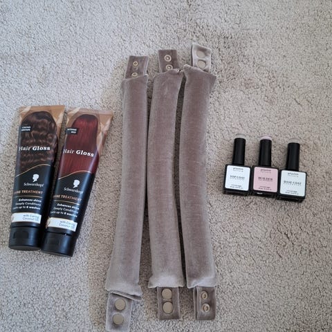 Käyttämättömiä, uusia hiustenhoito/ muotoilutuotteita.