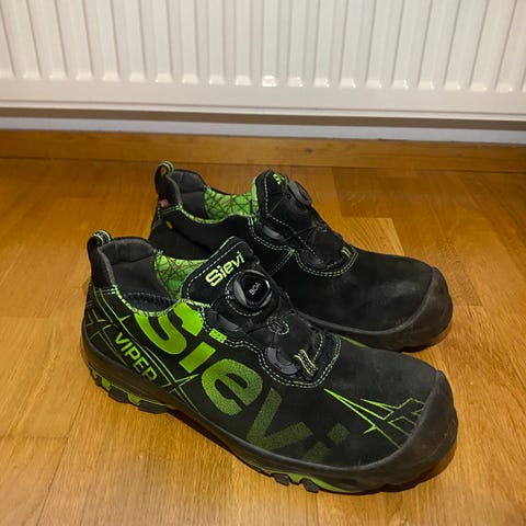 Sievi Roller High XL+ S3 turvakengät, koko 45. Kengät ovat nilkkapituiset ja väriltään mustat. Mallissa on Boa-kiinnitysjärjestelmä, joka mahdollistaa nauhojen säätämisen rullasäätimellä. Turvakengissä on varvassuoja ja S3-turvaluokitukseen kuuluva rakenne, joka sisältää muun muassa naulaanastumissuojan ja veden imeytymistä rajoittavan päällismateriaalin. Pohja on kuvioitu ja suunniteltu tarjoamaan pitoa liukkailla alustoilla. Soveltuu työ- ja suojajalkineeksi ympäristöihin, joissa vaaditaan S3-turvaluokan jalkineita.