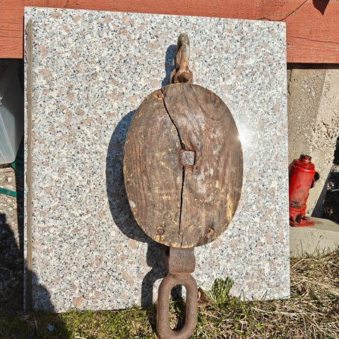 Vanha ploki metallipyörillä koko 17x11x12cm