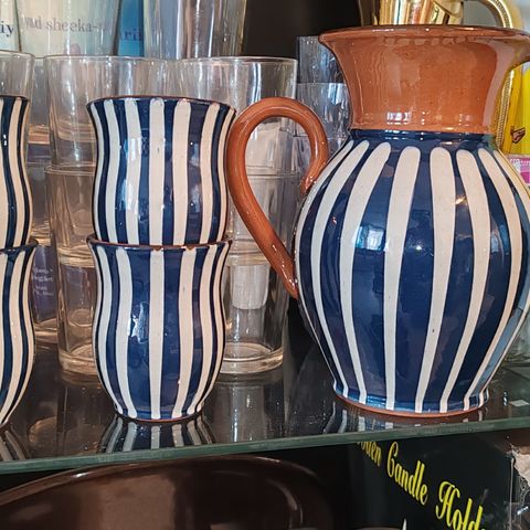 Keramiikkakana kannu ja mukit ruskea
