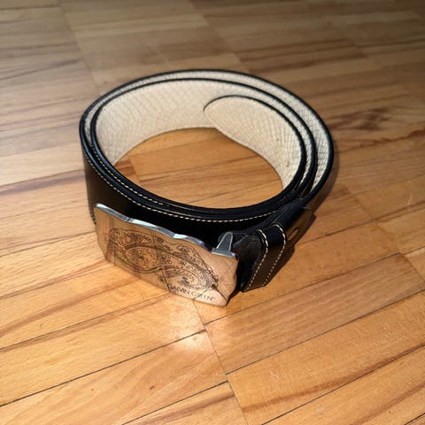 Tässä tarjolla kolme pientä nahkaista golfpallokoteloa, jotka saa helposti kulkemaan mukana vyöhön pujotettuina. Kuhunkin koteloon mahtuu kaksi palloa. Kahdessa kotelossa on tarrakiinnitys, yhdessä nepari. Vyön maksimileveys on 2 cm. Musta vyö kuuluu kauppaa, jos halutaan eikä maksa mitään. Hauska idea pieneksi lahjaksi innokkaalle golffarille!