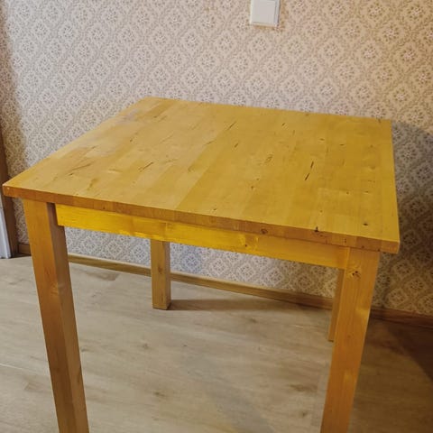 Itse tehty puinen ruokapöytä. Sopii toki muuhunkin käyttöön.