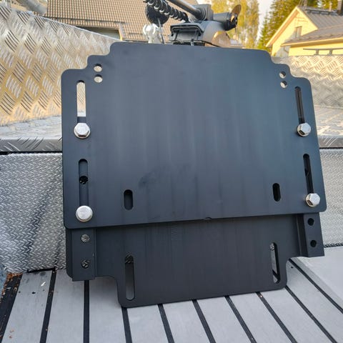 Alumiiniä ja pultit yms rosteria sekä lukitteet pulttien välissä kuten kuuluukin. Säätövara 100mm ja setback 4", tehty 100x100x10 alumiiniprofiilista. Kestää todistetusti ainakin v4 yamahaa roikottaa perässä useamman kesän(samaan aikaan näitä tehtiin useampi). Tämä on lojunut käyttämättä monta vuotta.