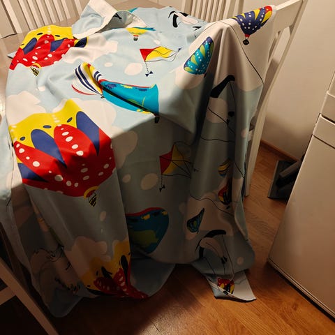 Lasten huoneen verhot, 2kpl, jossa on monivärinen eläinkuvioinen kuosi, toinen beessi. Settiin kuuluu värillinen nauha. Materiaalina on todennäköisesti puuvilla tai puuvillasekoite, joka sopii hyvin lasten sänkyyn ja päiväkoti- tai kotikäyttöön. Kuosissa on piirrosmaisia eläinhahmoja, kuten kissoja ja muita eläimiä oranssin, vihreän, turkoosin ja beigen sävyissä. Verhojen mitat: Leveys 147cm, korkeus 227cm. Nauha pituus 140cm.