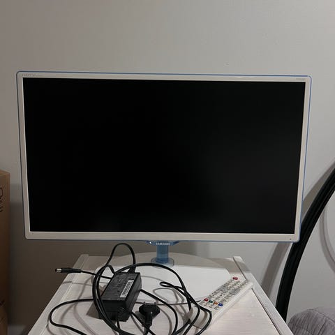Myydään tarpeettomana kyseinen näyttö kaukosäätimen ja virtakaapelin kanssa