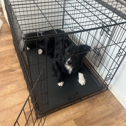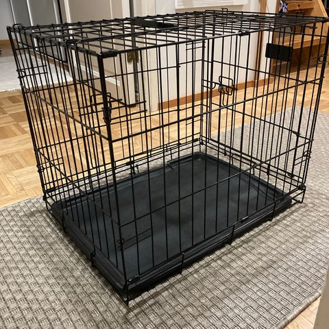 Metallinen koiran häkki musta. Häkissä on ritilärakenne ja irrotettava muovinen pohjakaukalo, joka helpottaa puhdistusta. Soveltuu koiran turvalliseen kuljettamiseen tai lepopaikaksi sisätiloihin. Häkissä on sivuaukot lukittavilla ovilla. Koko sopii pienelle tai keskikokoiselle koiralle mittojen mukaan. Lev. 60cm, syv. 43cm, kork. 50cm.