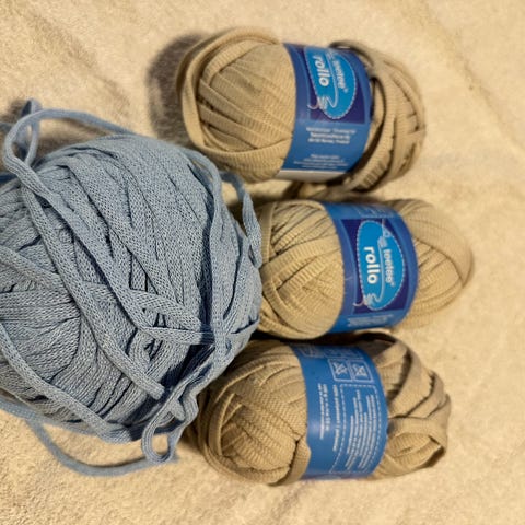 Katia Brisa (valkoinen) ja katia lino 100% (sininen). Sopii erilaisiin neule- ja virkkaustöihin, kuten asusteisiin ja kodintekstiileihin. Sininen 100% pellava, valkoinen puuvilla/viskoosi sekoite.