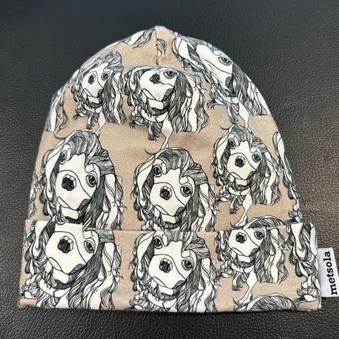 Metsola vaaleankeltainen puuvillapipo. Hyvä käytetty kunto, takana hieman enemmän haitua. Ei pesty kertaakaan, enkä koe tarvetta, ei tahroja. Koko 1-2y.