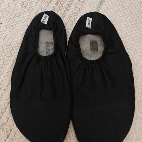 Jotkut Slipstoppeja paksumpipohjaiset nahkaiset? tossut. Sm 23 cm. Ottaneet väriä käytössä, ei ole yritetty puhdistaa. Sisäliikunnassa käytetty.