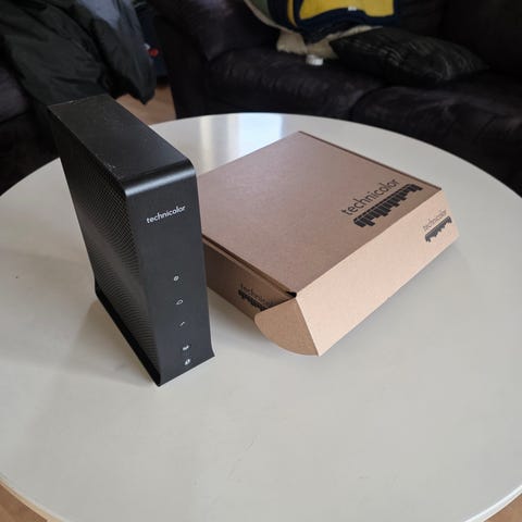Myydään tarpeettomaksi jäänyt Technicolor CGA2121 kaapelimodeemi, valkoinen. Mukana virtalähde ja verkkokaapeli. Soveltuu kiinteään kaapelilaajakaistayhteyteen, kunhan operaattorin verkko ja asetukset ovat yhteensopivat tämän mallin kanssa. Meillä toiminut ainakin Telian kaapeliverkossa.