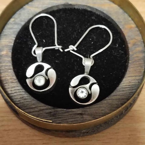 Karl Laineen tapilliset hopeiset korvakorut vuorikiteillä.