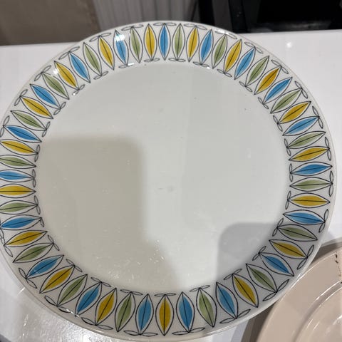 Arabia lautanen, halkaisija noin 19 cm. Valkoinen pohja ja sininen koristekuvio. Soveltuu kattaukseen ja tarjoiluun. Materiaali posliini. Ison kahvimukin lautanen. Käsinmaalattu, signeeraus pohjassa