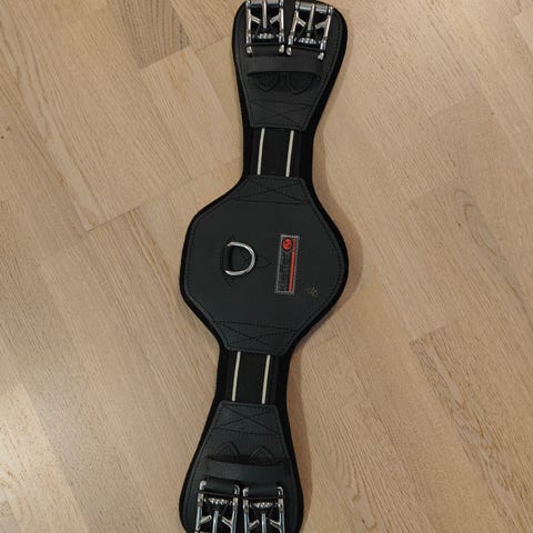 "Helppohoitoinen ja leveä synteettinen koulusatulavyö tasaa hevoseen kohdistuvaa painetta ja helpottaa hevosen hengittämistä suorituksen aikana. Vyössä on patentoitu pehmeä CAIR® Cushion-toppaus, ruostumattomat rullasoljet ja D-rengas turvamekanismilla keskellä."