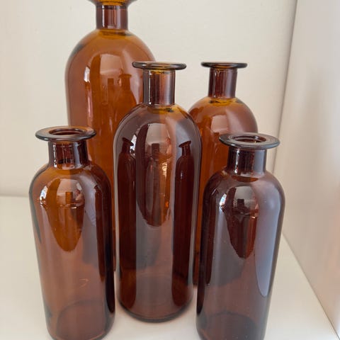 IKEA lasimaljakot, harmaata lasia. Kaksi erikokoista maljakkoa, sopivat esimerkiksi kukille, oksille tai sisustuselementeiksi pöydälle tai hyllylle. Yksinkertainen ja moderni muotoilu, läpikuultava värisävy.
