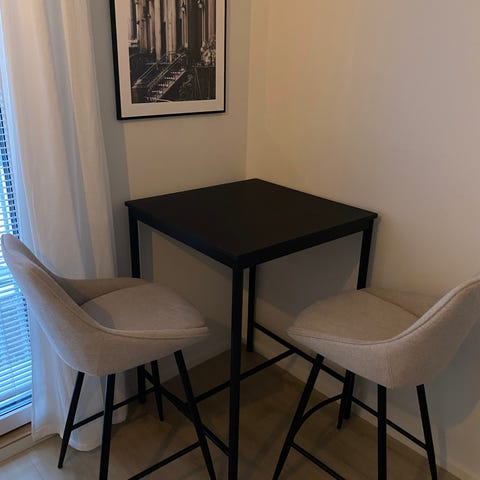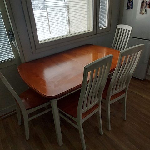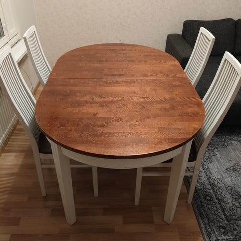 Muuton alta pitäisi saada poisa. Pöytä ja tuolit ovat hyvässä kunnnossa.