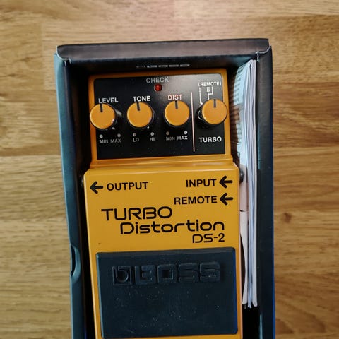 Erittäin hyväkuntoinen Marshall-tyyppinen säröpedaali erikseen toimivalla boostilla. Velcroa pohjassa.
