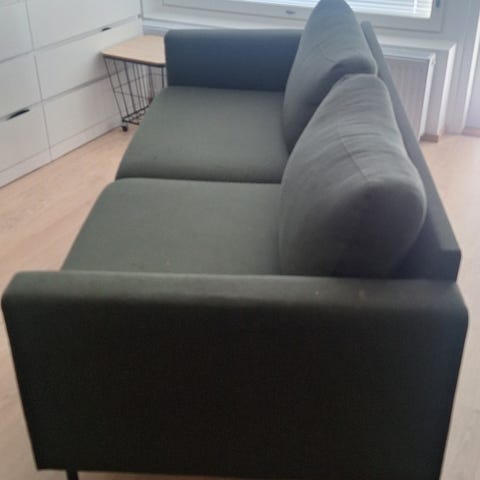 Käytetty 3 istuttava harmaa sohva. Vain nouto. Vaihdossa kelpaa suklaalevy.