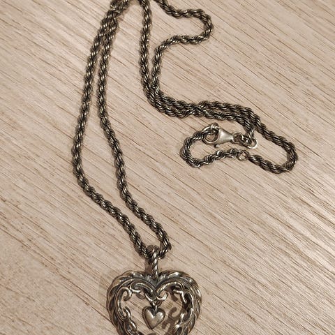 Kalevala korun Talon sydän kaulakoru. Materiaalina hopea.