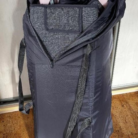 Hyväkuntoinen matkasänky. Kuljetuskassin kulmassa repeämä, katso kuvat. Matkasänky erittäin hyvässä kunnossa.