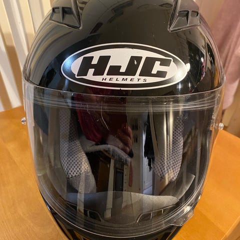 M 57-58Koon kypärä. Vähän jo elämää nähnyt mutta ei ole tiputeltu/kolaroitu.