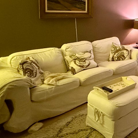 Myydään hyväkuntoinen valkea sohva..