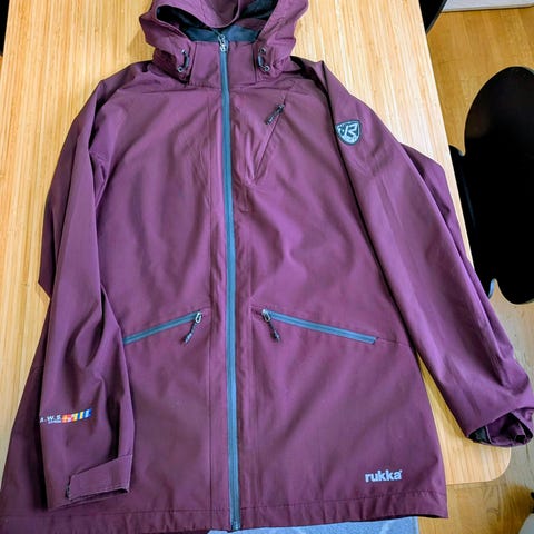 Rukka naisten takki, koko XL (EUR 42–44), valkoinen. Takissa on etuvetoketju ja neppilista, useita etutaskuja sekä säädettävä huppu, jossa on irrotettava tai säädettävä tekoturkisreunus. Hihansuissa on sisäresorit. Sopii arki- ja ulkoilukäyttöön viileään säähän.