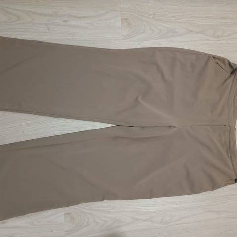 H&M naisten housut, koko XL. Väri beige. Materiaali polyesteriä. Suora malli, vyötäröllä vyötärönauha ja vetoketju- sekä nappikiinnitys. Sopivat arki- ja toimistokäyttöön sekä yhdistettäväksi esimerkiksi bleiserin kanssa puvuksi.