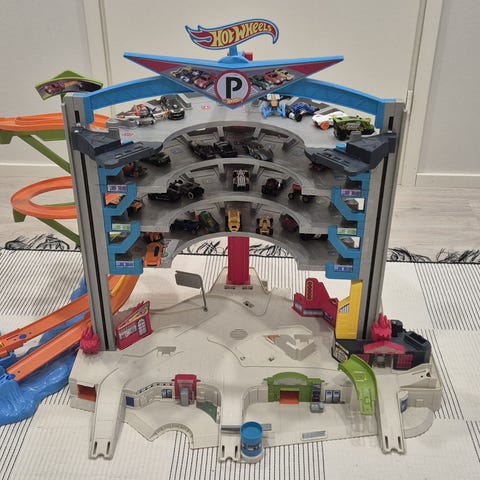 Hot Wheels autoratoja ja säilytyslaatikko.