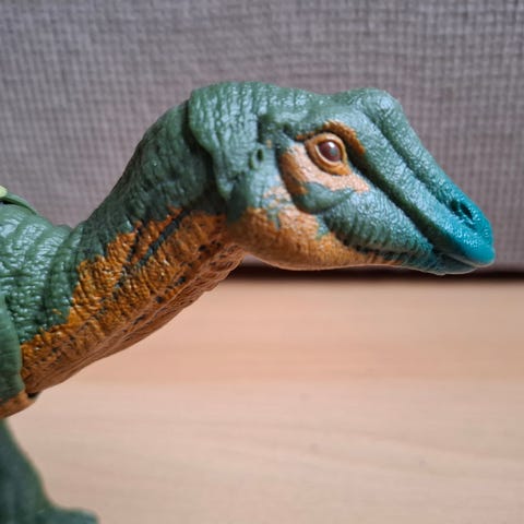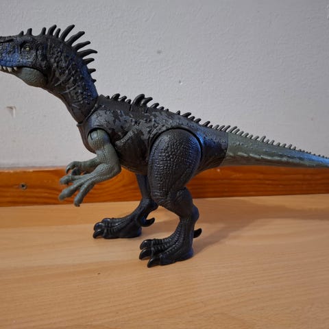 Mattelin valmistama Jurassic World sarjan punaisen ja ruskean sävyissä oleva dinosauruslelu diabloceratops. Lelun pituus noin 30cm. Aika vähän leikitty. Selän alla koodi jurassic world play-peliin. Selän vipua liikuttamalla pää liikkuu molempiin suuntiin ja dino ärjyy. Liikkuvat raajat, pää ja häntä. Tässä tulee patterit mukaan. Malli on jalan tekstin mukaan vuodelta 2022.