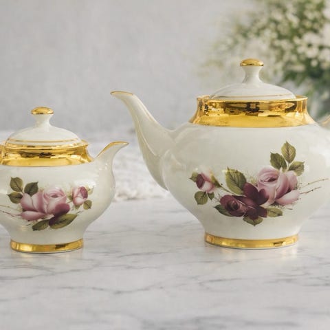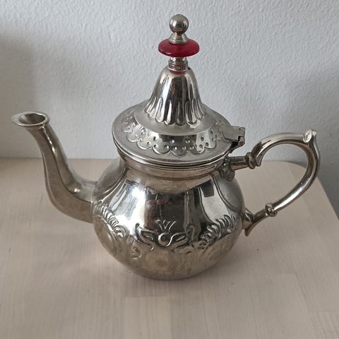Teräksinen ja emaloitu teekannu, hopea ja valkoinen