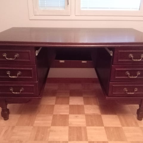 Puinen tukeva kirjoituspöytä.