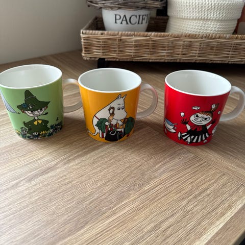 2 Muumimukia: Poliisimestari ja Pikku Myy Punainen . Molemmissa tarrat. 20 euroa kappale.