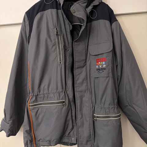 Talvitakki on yleisesti hyvässä kunnossa. Pientä käytön jälkeä painatuksissa ja tekstiilissä.