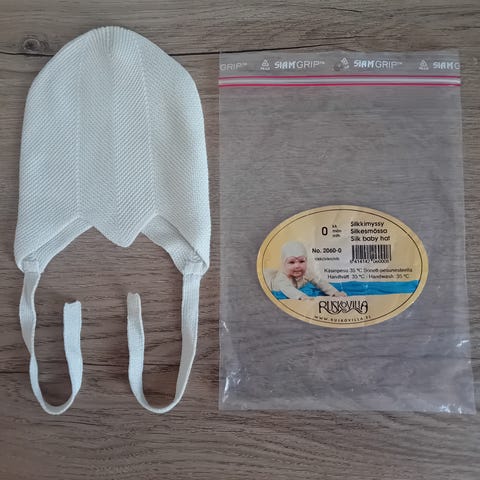 Hyväkuntoinen vauvan silkkimyssy 3-6kk.
